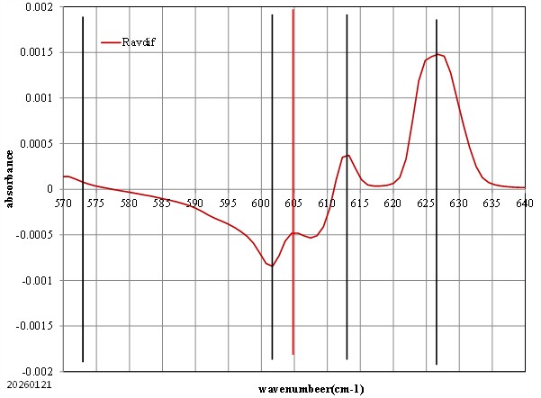 (2)中低濃度、outer phonon bandとmiddle bandの間のmiddle baseline, 590-618cm-1