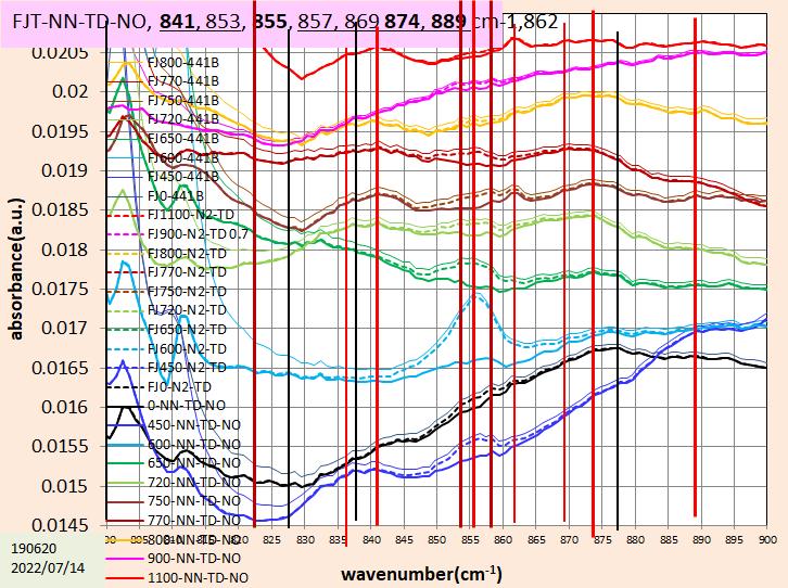 855p-1の吸収には高波数側と低波数側に吸収があり、800℃以上で強くなります。ます。