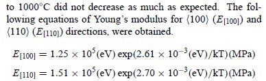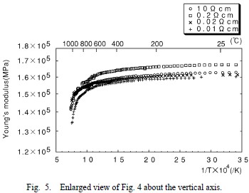 上の発表から少し遅れて、ヤング率の測定と、大直径結晶の応力のシミュレイションが行われました。ヤング率は温度依存性が既報では1eVと推定されたのに対して0.0027eVと小さいため融点での推定値が従来のとなりました。応力は以前のせん断応力の0.5MPaから直径cmでの推定圧縮応力のとなりました。