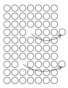 ,空 孔で は 表 面 に 放 出す る た め 体 積 が 増大 する (VF= Ω >0).詳 し く考え る と格 子 間 原子が できる と周 りの 原 子 を 押 し広 げ (緩 和 体 積 VF' =α Ω> 0),空孔 で は 反 対 とな る が ,原子 1 個 の 変化ほど で は な い (α < 1)た め 差 し 引 ぎ (VF =(1一α)Ω> 0)で は 前者 の 効果の 方 が 大 きい .