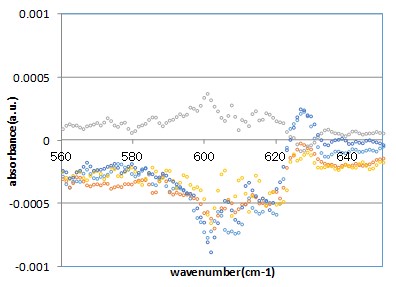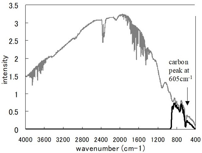 炭素の場合その波長は約16μm(604.5p-1)である。(図1 carbon、TestとRefの差)